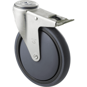 M Series castor, energy absorbent, 175mm grey rubber wheel, plain bearing, swivel bolt hole, total brake, 200 kg load