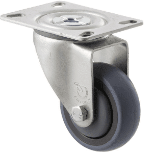 M Series castor, energy absorbent, 75mm grey rubber wheel (tall profile), precision bearing, swivel plate, total brake, 100 kg load rating