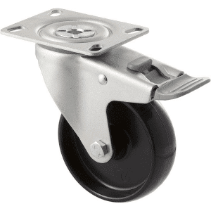 M Series castor, 100mm black nylon wheel, swivel plate, total brake, stainless steel axlespacer, 150 kg load