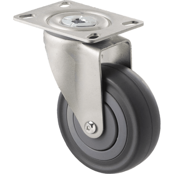 The MSQ100G/MZPGC Castor has a Grey rubber (flat profile) wheel with a diameter of 100Â mm, and a maximum load capacity of 140Â kg per Castor.