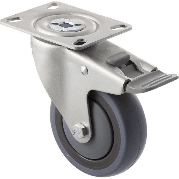 The STQ100G/MZPNTBG Castor has a Grey rubber wheel with a diameter of 100Â mm, and a maximum load capacity of 100Â kg per Castor.