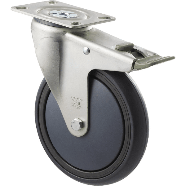M Series castor, energy absorbent, 150mm grey rubber wheel, plain bearing, swivel North American (NA) plate, direction lock, 200 kg load