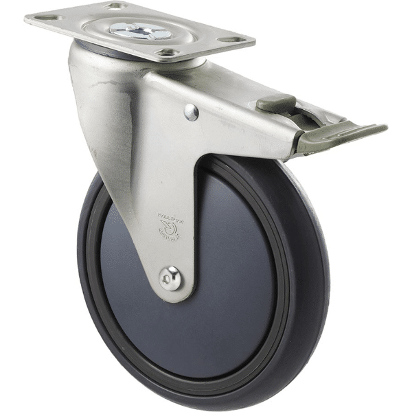 M Series castor, energy absorbent, 150mm grey rubber wheel, plain bearing, swivel North American (NA) plate, direction lock, Chicago screw axle 200 kg load