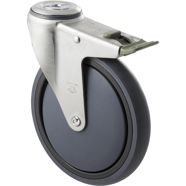 M Series castor, energy absorbent, 175mm grey rubber wheel, plain bearing, swivel bolt hole, direction lock, Chicago screw axle, 200 kg load
