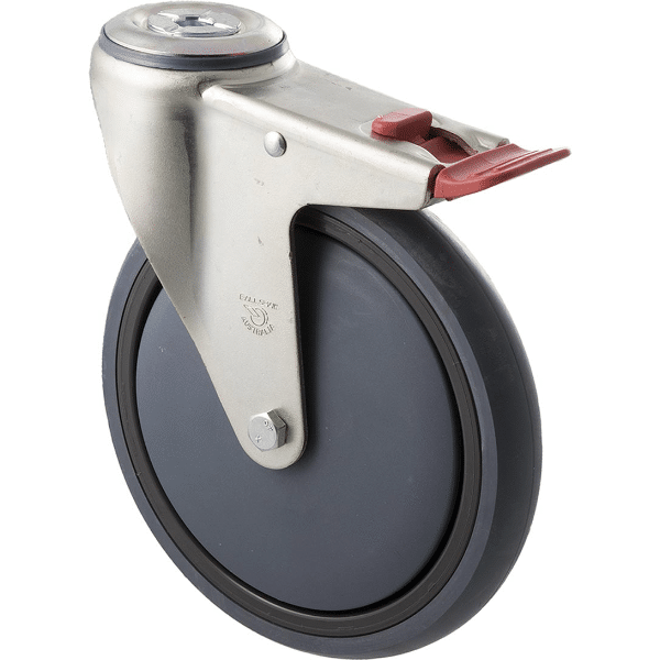 M Series castor, energy absorbent, 175mm grey rubber wheel, plain bearing, swivel bolt hole, total brake, 200 kg load