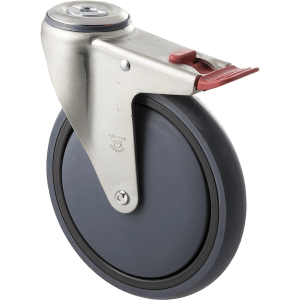 M Series castor, energy absorbent, 175mm grey rubber wheel, plain bearing, swivel bolt hole, total brake, Chicago screw axle, 200 kg load