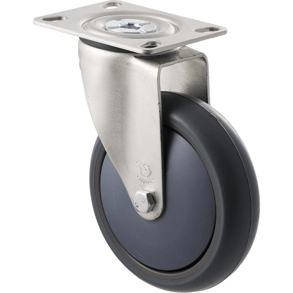 The MJQ125G/MZPNB Castor has a Thermoplastic elastomer (TPE) wheel with a diameter of 125Â mm, and a maximum load capacity of 85Â kg per Castor.