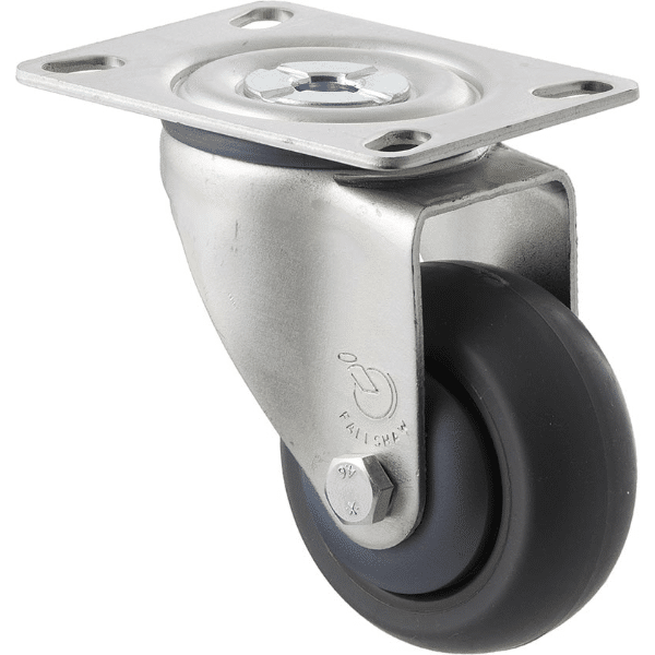 The MJA75G/MZPN Castor has a Thermoplastic elastomer (TPE) wheel with a diameter of 75Â mm, and a maximum load capacity of 85Â kg per Castor.