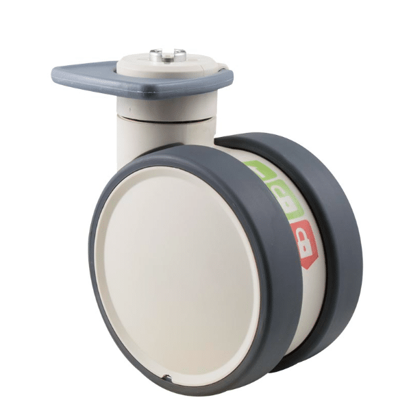 Trinity medical castor, 100mm conductive wheel, 90 degree pedal, complete brake, eggshell colourway, 100 kg load rating