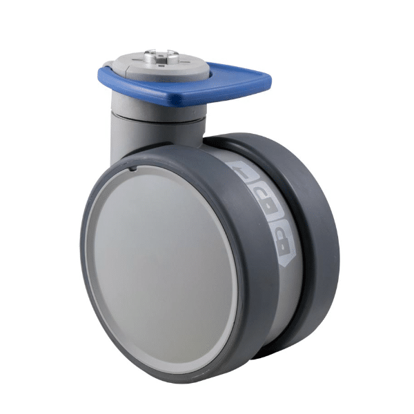 Trinity medical castor, 100mm conductive wheel, in-line pedal, blank castor, cool grey colourway, 100 kg load rating