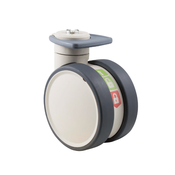 Trinity medical castor, 100mm conductive wheel, in-line pedal, total brake, eggshell colourway, 100 kg load rating