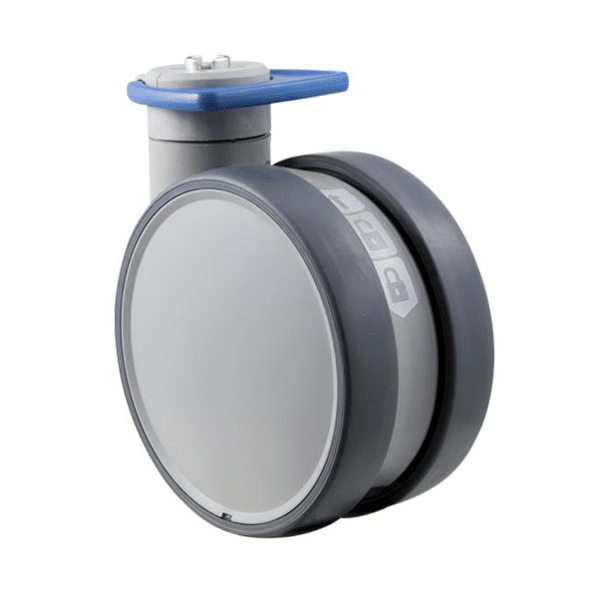 Trinity medical castor, 100mm conductive wheel, in-line pedal, blank castor, cool grey colourway, 100 kg load rating