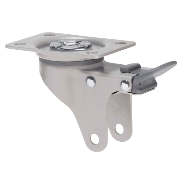 Arc K Series decorative grey powder-coat fork for 75mmx 28mm wheel, swivel plate, total brake.Availability: 12 in stock