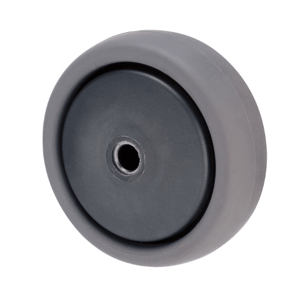 K Series, 75mm x 28mm x 23mm TPE rubber wheel, plain bearing, graphite thread guard, 50 kg load rating