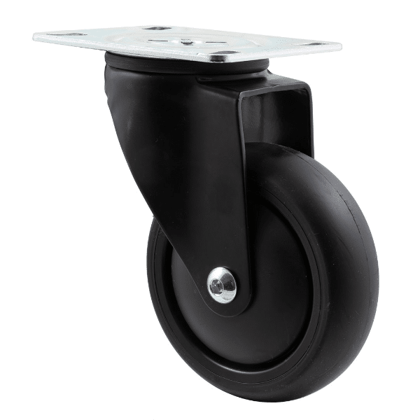 The MJQ100G/MPPBLK Castor has a Thermoplastic elastomer (TPE) wheel with a diameter of 100Â mm, and a maximum load capacity of 85Â kg per Castor.