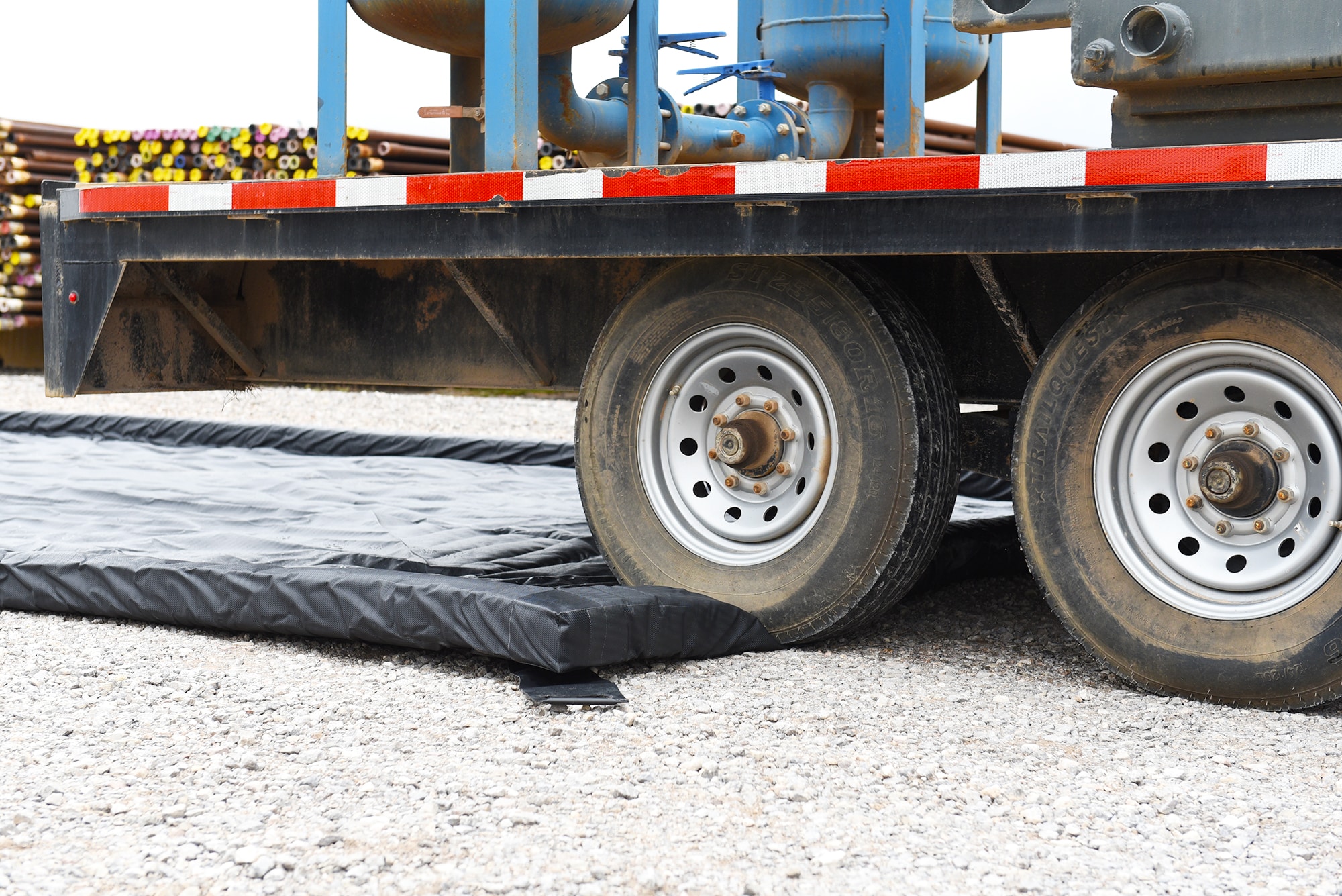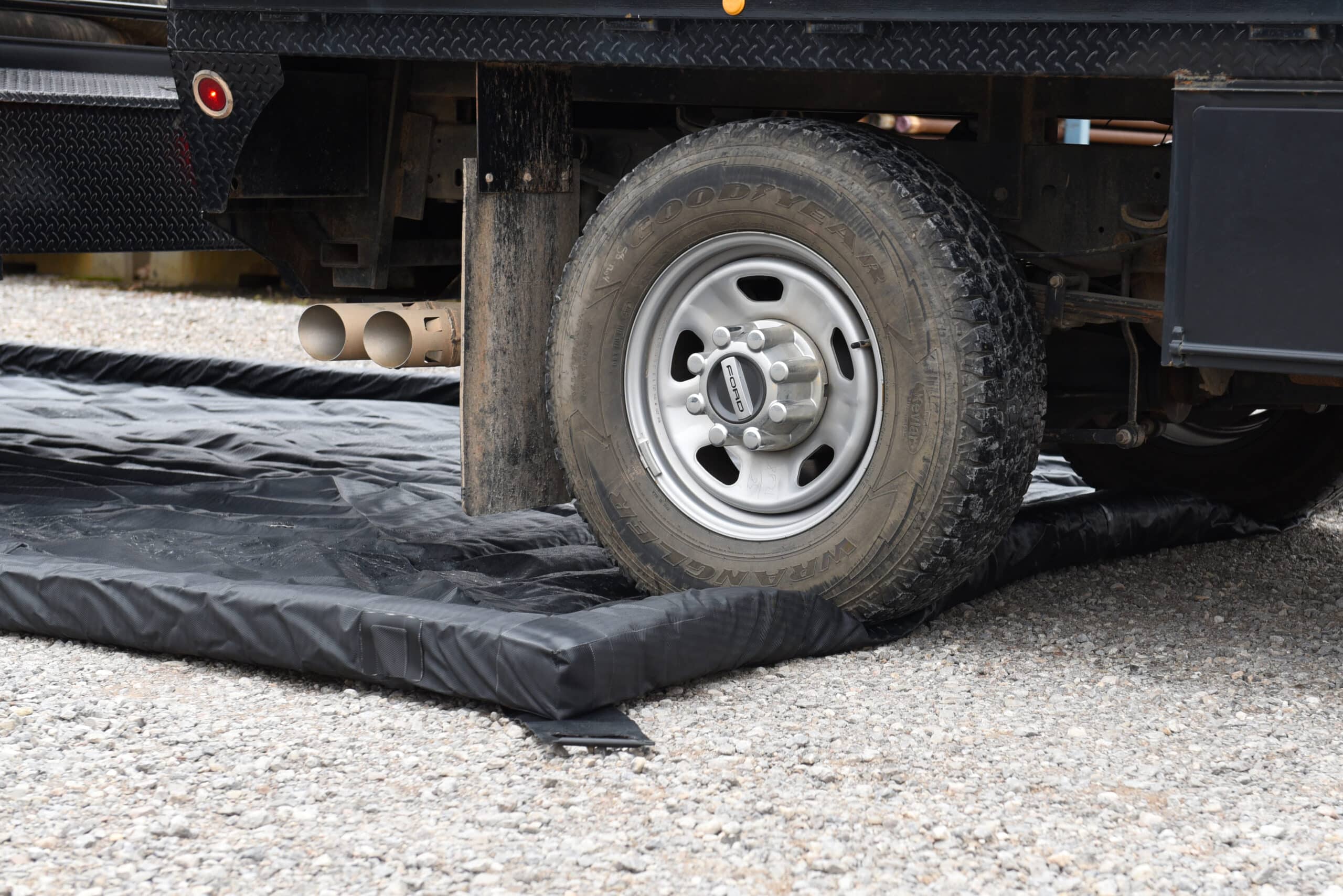 Flexible foam-supported sidewalls allow trucks and heavy equipment to enter and exit with ease.