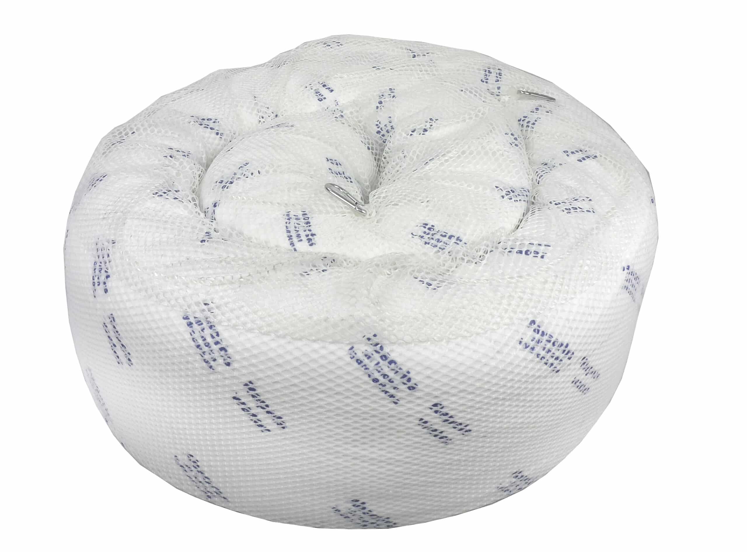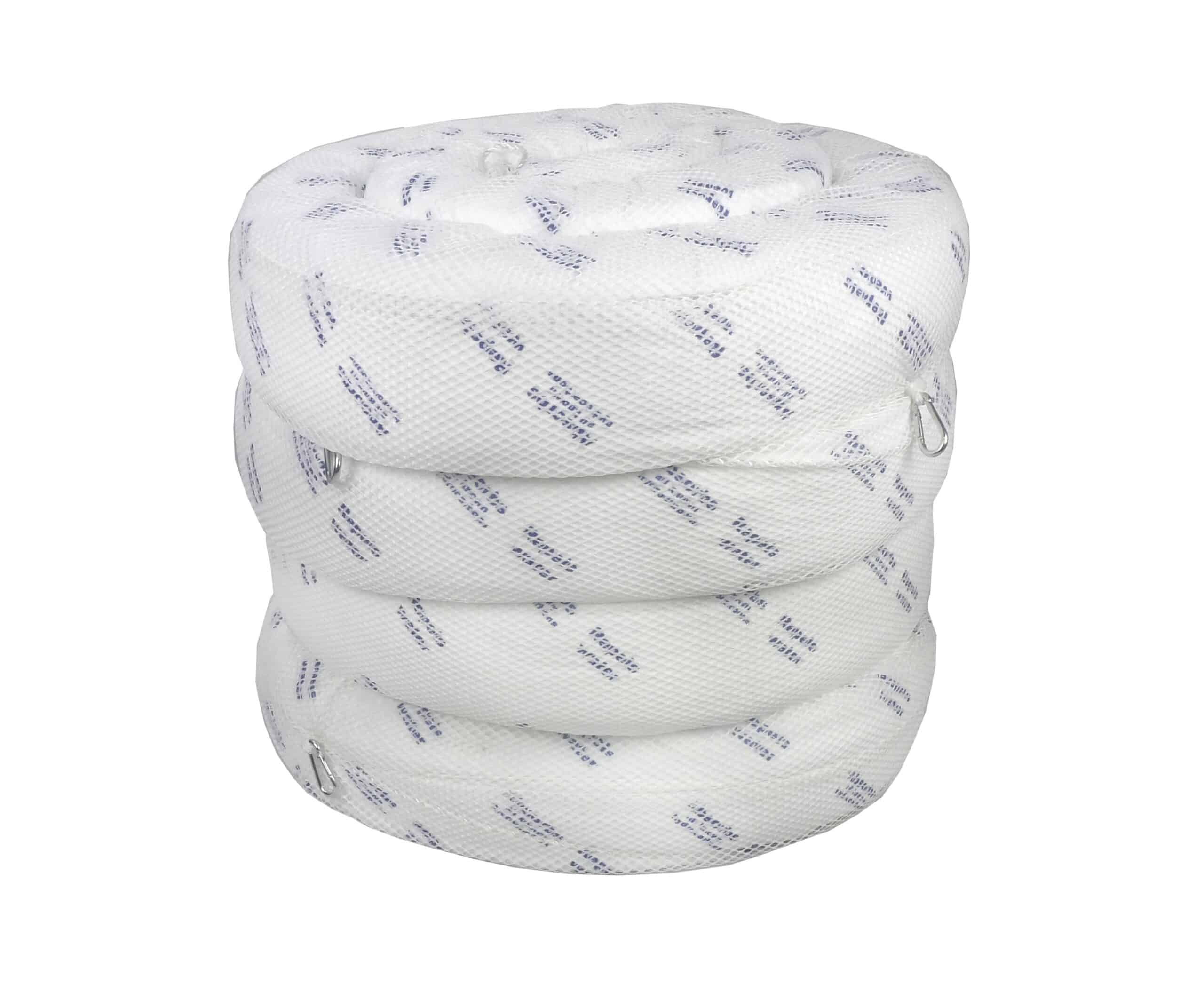 Constructed with a durable spunbond mesh outer and polypropylene fill, this boom absorbs hydrocarbons while repelling water. It remains buoyant even when saturated and is equipped with snap hooks for easy connection, allowing multiple booms to be linked together for extended containment coverage.